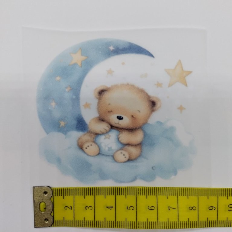 Anleitung: Bügelbild mit Trägerpapier nach oben (Motiv ist sichtbar, rauhe, weiße Seite liegt auf dem Stoff) positionieren. Backpapier auflegen und mit der Bügelpresse oder alternativ dem Bügeleisen (Stück für Stück ohne das Bild noch einmal zu verschieben!) bei ca. 150-160 Grad etwa 10-15 Sekunden mit hohem Druck aufpressen. Das Bügelbild abkühlen lassen und erst dann (!) das Trägerpapier vorsichtig abziehen. Löst sich das Bügelbild noch nicht vom Träger, Bügelzeit oder Temperatur in kleinen Schritten erhöhen. Nach Abziehen des Trägers noch einmal das Backpapier auflegen und den Bügel- bzw. Pressvorgang 30 Sekunden wiederholen.