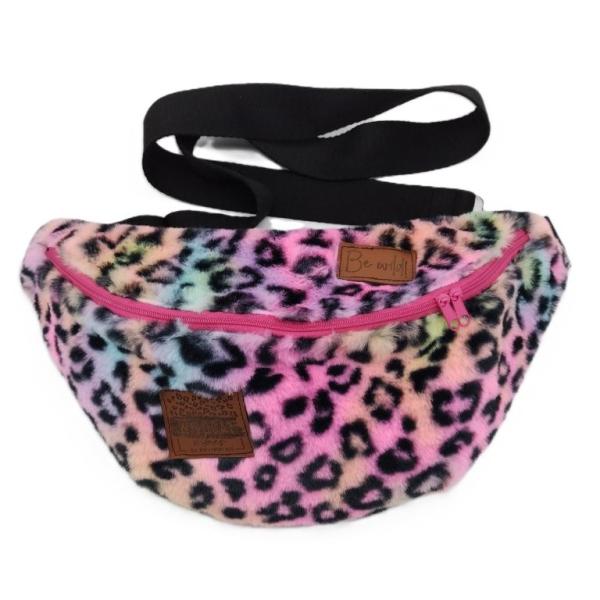 Sie wurde aus kuschelig weichem, regenbogenfarbenen Leo-Plüsch genäht.