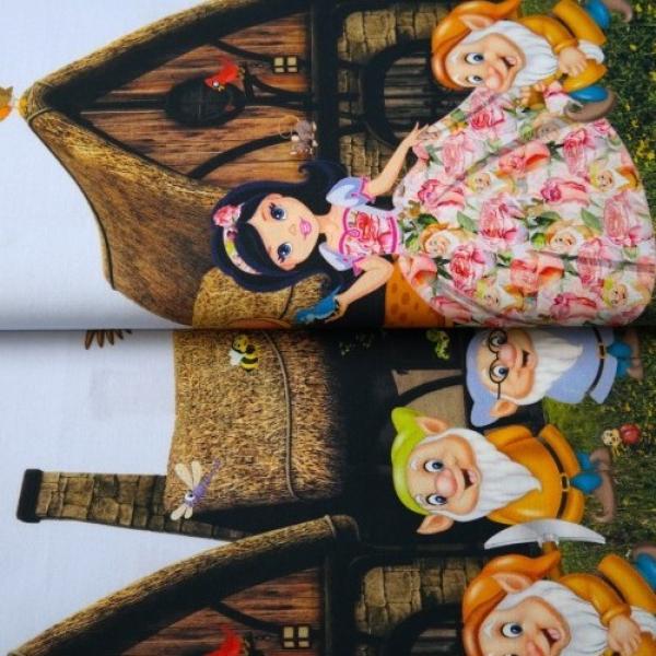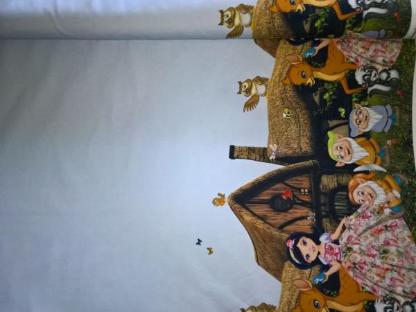 Toller Bordürenstoff mit Märchenmotiv und hellblauem Hintergrund.