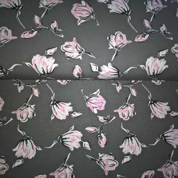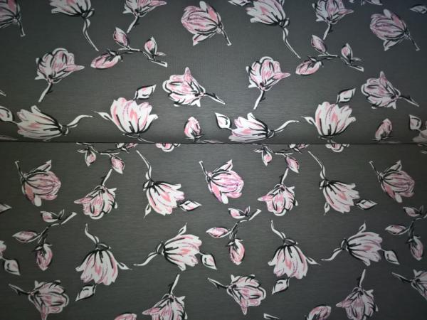 Rosa Magnolien mit Glitzerakzenten auf grauem Grund.