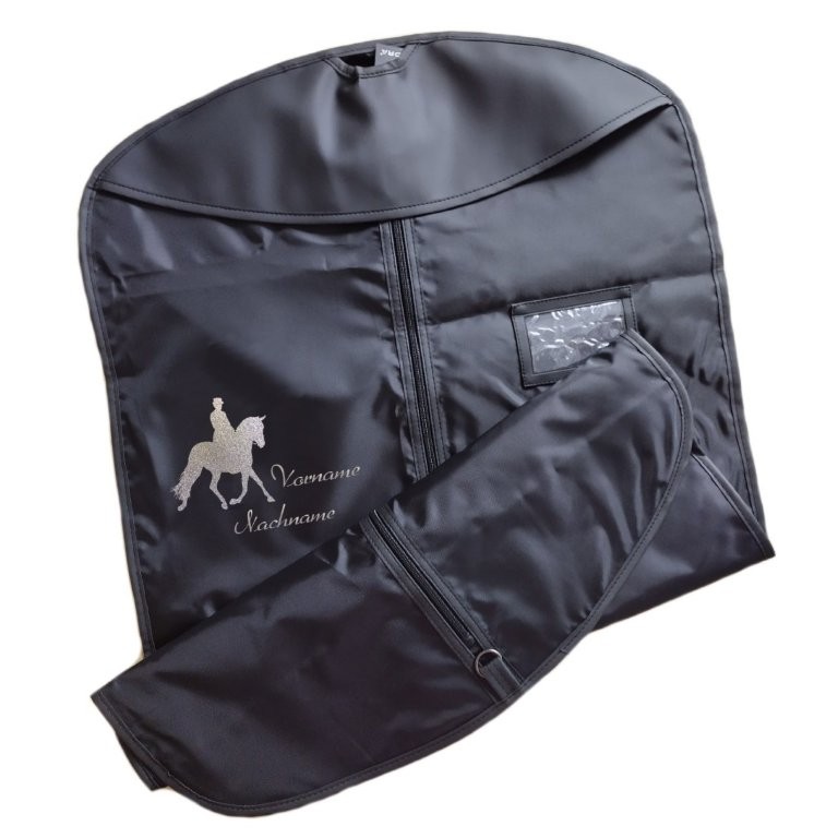 Hochwertige, stabile Kleiderhülle mit Druck in Wunschfarbe einer Dressur- Reiterin, individualisiert mit Vor- und Nachname.