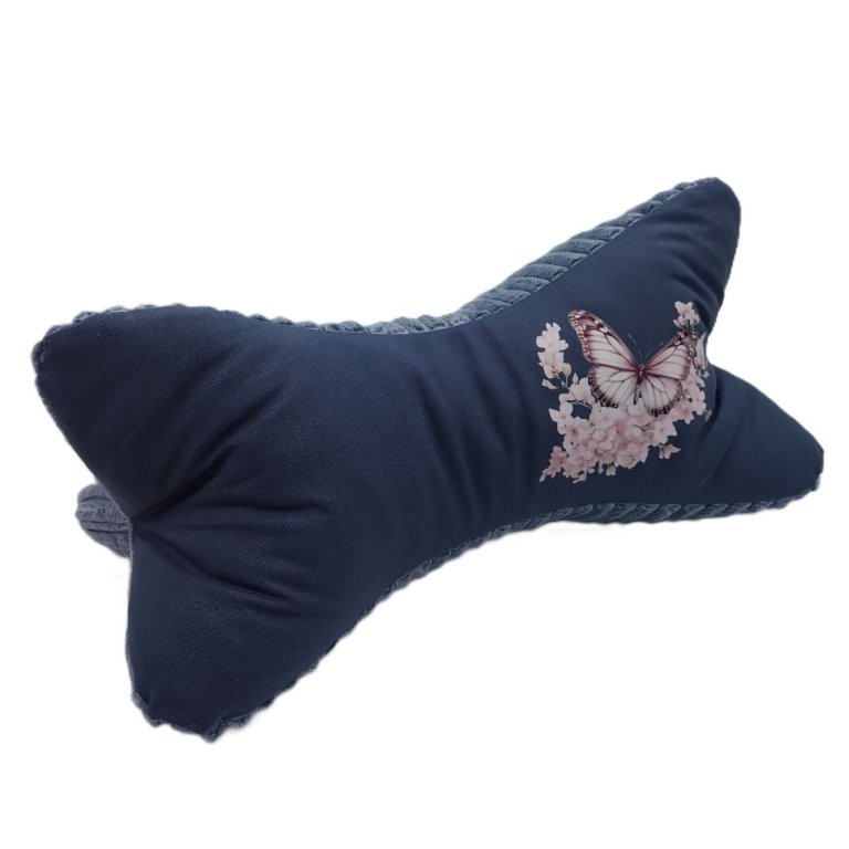 Bei diesem Leseknochen wurde Cordstoff mit Baumwollstoff kombiniert. Der aufgedruckte Schmetterling sorgt für einen besonderen Blickfang.