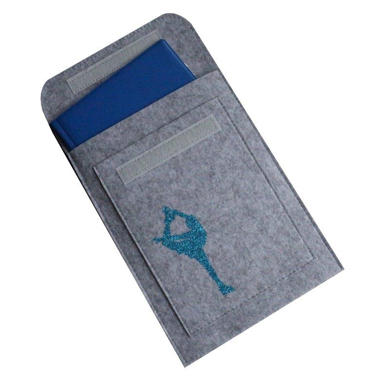 In dieser Filz-Hülle lassen sich Sportpass und Datenträger mit Musik aufbewahren. So bleibt Beides immer zusammen und ist auch mit einem Griff für Wettkämpfe eingepackt.