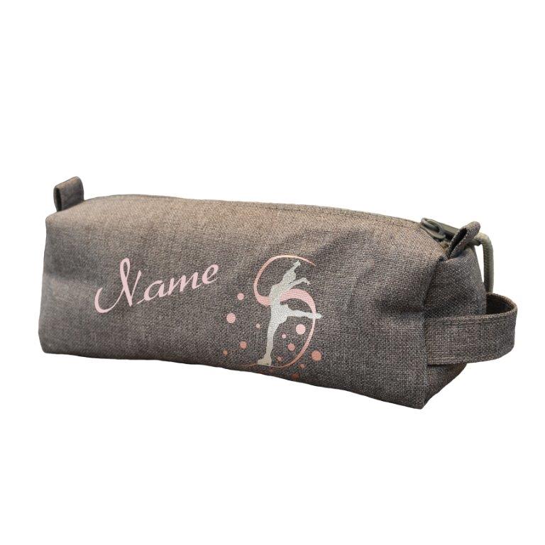 Der Aufdruck zeigt ein Eiskunstlaufmotiv in silber Glitzer und rosa. Der Name wird farblich dem Motiv entsprechend in rosa aufgebracht.