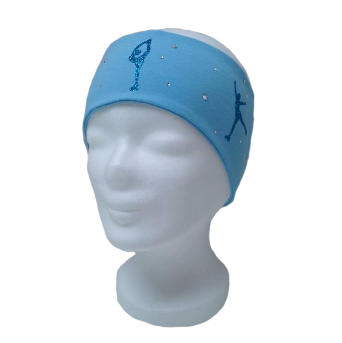 Dieses Stirnband ist ein absoluter Hingucker und hält die Ohren schön warm. Es wird aus zwei Lagen hellblauem Stoff genäht und individuell veredelt.