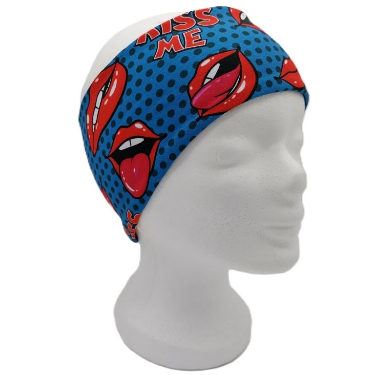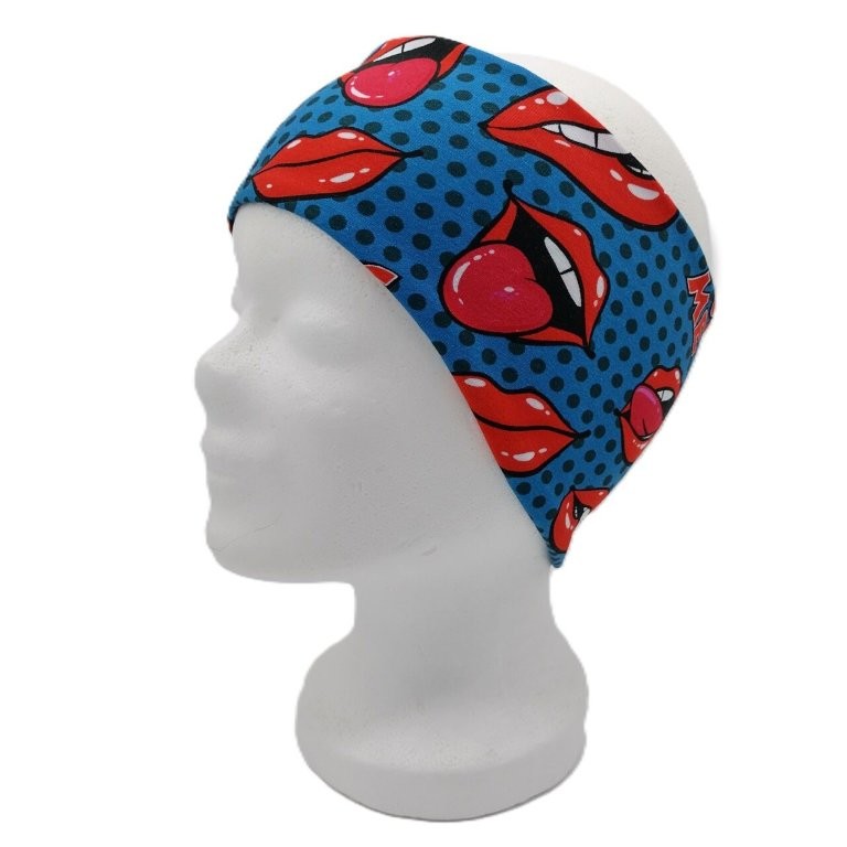 Das Stirnband wird aus blauem Jersey im Rockabilly-Stil in passender Größe für Sie angefertigt.